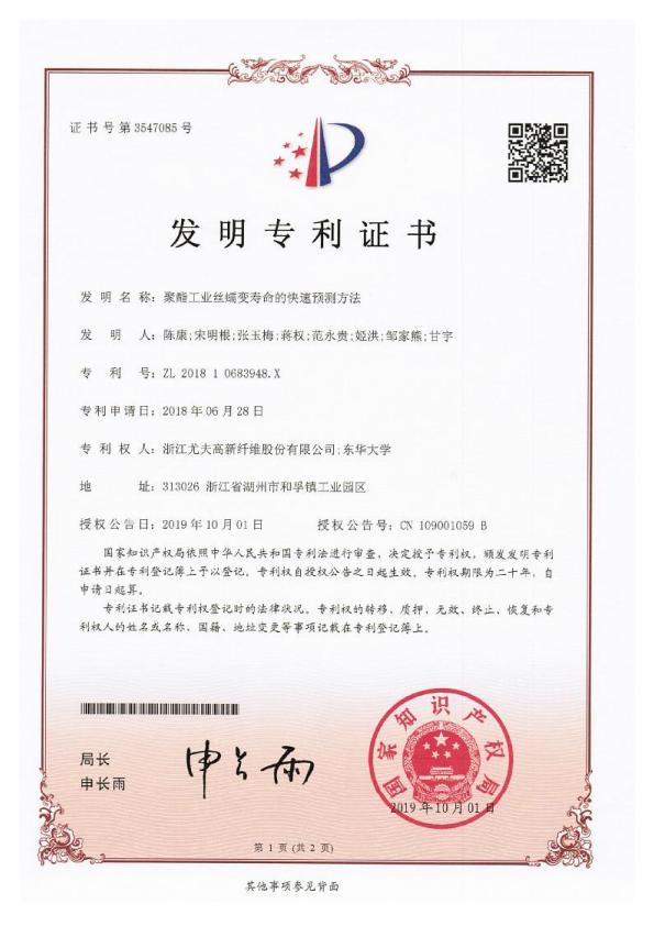 • 發明-聚酯工業絲蠕變壽命的快速預測方法